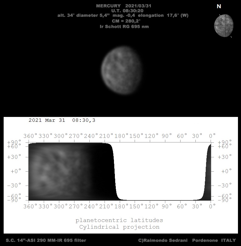 Mercurio con mappa di Raimondo Sedrani su PhotoCoelum. Clicca per maggiori informazioni sulle condizioni e gli strumenti di ripresa. Crediti Coelum Astronomia/Raimondo Sedrani