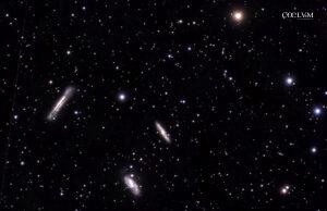 Superato l'equinozio di primavera, il mese di aprile si inaugura con un cielo in rapida trasformazione. Le costellazioni oggetto di approfondimento - tra quelle che alla metà del mese si troveranno in prossimità del meridiano locale intorno alla mezzanotte - saranno il Corvo, la Chioma di Berenice e i Cani da caccia. Di esse vengono approfonditi gli aspetti generali, la presenza di oggetti di cielo profondo e il contesto storico e mitologico.
