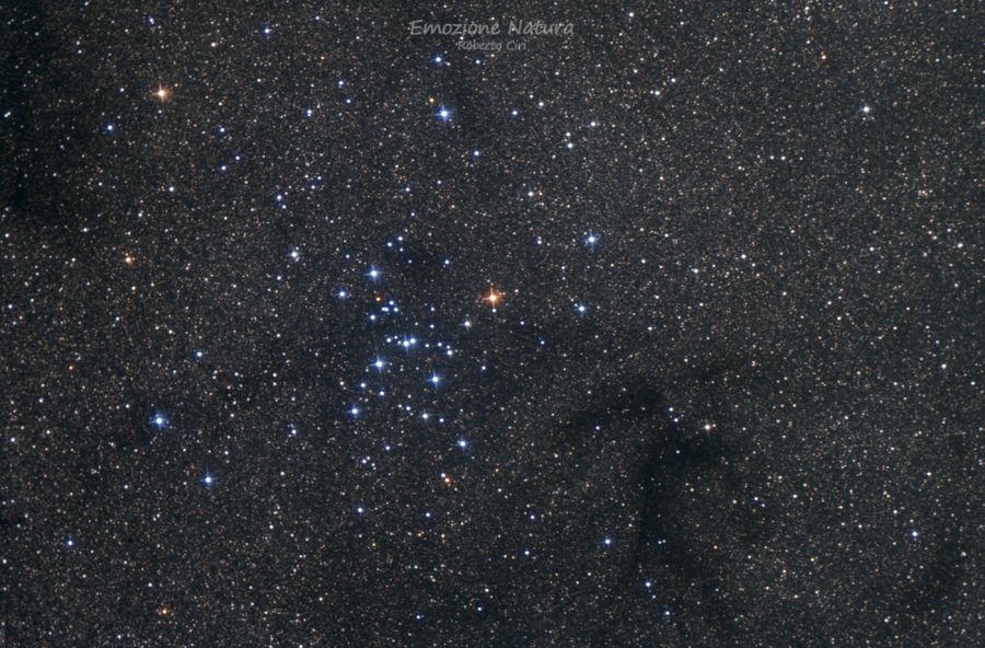 Binocolo:facilmente individuabile con un 10×50, che rivela centinaia di stelle concentrate in uno spazio di circa un grado quadrato.