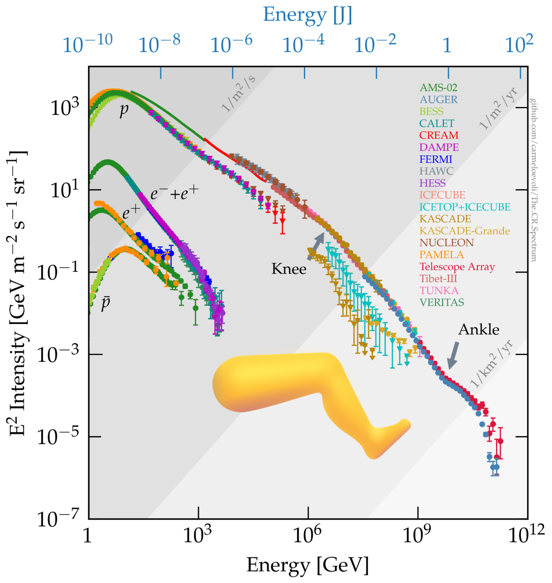Quando queste particelle si scontrano o vengono improvvisamente deviate da qualche campo magnetico, rilasciano enormi quantità di energia sotto forma di radiazione, fino alla banda di frequenza dei raggi gamma, la più intensa dell’intero spettro elettromagnetico. Per quanto riguarda i protoni, il fenomeno più frequente è la collisione tra queste particelle. Il loro scontro fa sì che vengano prodotti pioni, un tipo di particelle che si indica con il simbolo π, caratterizzate da una vita molto breve (circa 0,00000000000000001 secondi o 10 attosecondi). Passato questo tempo infinitamente piccolo, la particella π decade e si trasforma in un altro tipo di particella: a volte si trasforma in raggi gamma, ovvero particelle senza massa ad altissima energia (simili alle particelle che costituiscono la luce visibile, ma con energie e frequenze molto più alte), altre volte in neutrini.