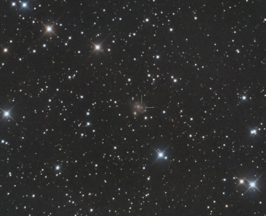 L’oggetto in questione si trova nelle vicinanze della posizione RA 18h 20m 46.16s, DEC -13° 45′ 27.3″ (J2000), in un campo stellare abbastanza denso, immerso in emissioni di idrogeno ionizzato. Nella composizione RGB e nei singoli canali (R, G, B), la fonte luminosa appare debole ma è identificabile e sbilanciata verso il rosso. Nel canale OIII si osserva invece una maggiore e marcata luminosità se paragonata alle stelle del campo, mentre nei canali SII e Hα l’intensità è meno marcata. Le immagini in figura 2 rappresentano un confronto qualitativo tra le varie bande nelle osservazioni di Federico di giugno 2025.