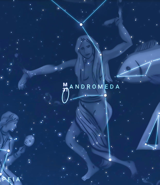 Oltre ad ospitare un buon numero di stelle doppie come π Andromedae, una coppia risolvibile già con un binocolo e sistemi multipli come μ Andromedae, è innegabile che la fama della costellazione è dovuta principalmente all’oggetto del profondo cielo che essa ospita: M31, la Galassia di Andromeda.