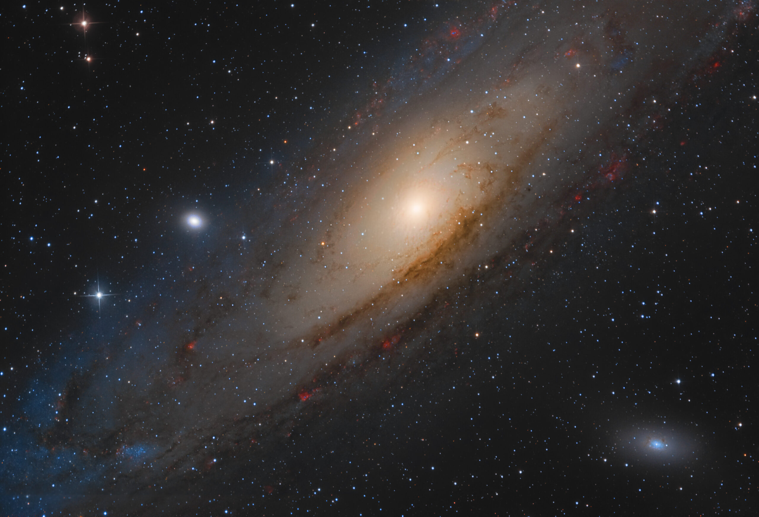Posta a oltre 2 milioni di anni luce, M31 è una galassia a spirale, la più vicina alla nostra Via Lattea e sorprendentemente visibile ad occhio nudo da luoghi idonei all’osservazione del cielo notturno.