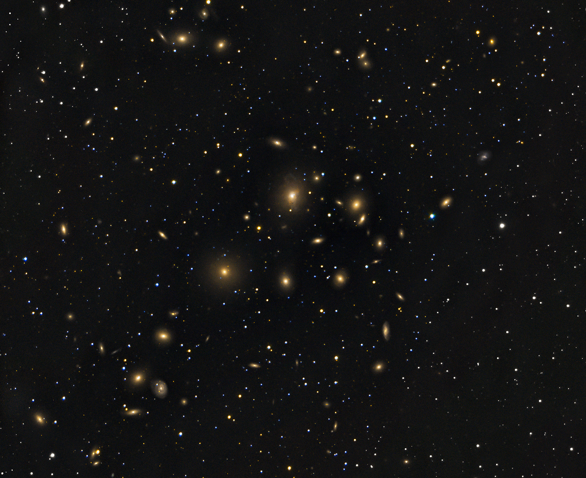 I classici cataloghi con l’andare del tempo però non mi hanno più soddisfatto e grazie al consiglio di un amico sono arrivato a consultare cataloghi meno noti. Ho iniziato prendere nota di varie sigle specie dei cataloghi Abell, Arp e Hickson. Così, stagione per stagione, appoggiandomi anche a testi dedicati alle galassie peculiari in genere in inglese, ho selezionato i soggetti disponibili nel mio cielo e scartato quelli non accessibili. Con minuziosa pazienza pianifico i giorni migliori, sia in presenza della Luna che senza, usando filtri a banda stretta e larga, alla fine sono riuscito a sfruttare tutto il meteo favorevole anche quando c’è Luna anche al 90%, l’unica vera discriminante diventa la distanza: l’importante è che il soggetto non sia troppo vicino al nostro amato satellite, un faro nella notte. Certo i giorni migliori restano quelli di assenza della Luna, il cosiddetto Novilunio, nei quali riprendo i soggetti più lontani come galassie e ammassi di galassie fino a mezzo miliardo di anni luce. Ogni osservazione in realtà è un esperimento durante il quale valuto e eseguo test per verificare fino dove posso spingermi per ottenere qualcosa di esteticamente valido. So già di partenza che certi cataloghi, come quelli sopra citati, non hanno alcuna valenza estetica, ma mirano a divulgare le bellezze meno note del nostro meraviglioso Universo ma le mie aspettative sono sempre elevate. Ad oggi ho ripreso circa quaranta soggetti, di cui le galassie più piccole rappresentano il campione meno numeroso visto i maggiori tempi di ripresa necessari, sono richiesti minimo alcuni.