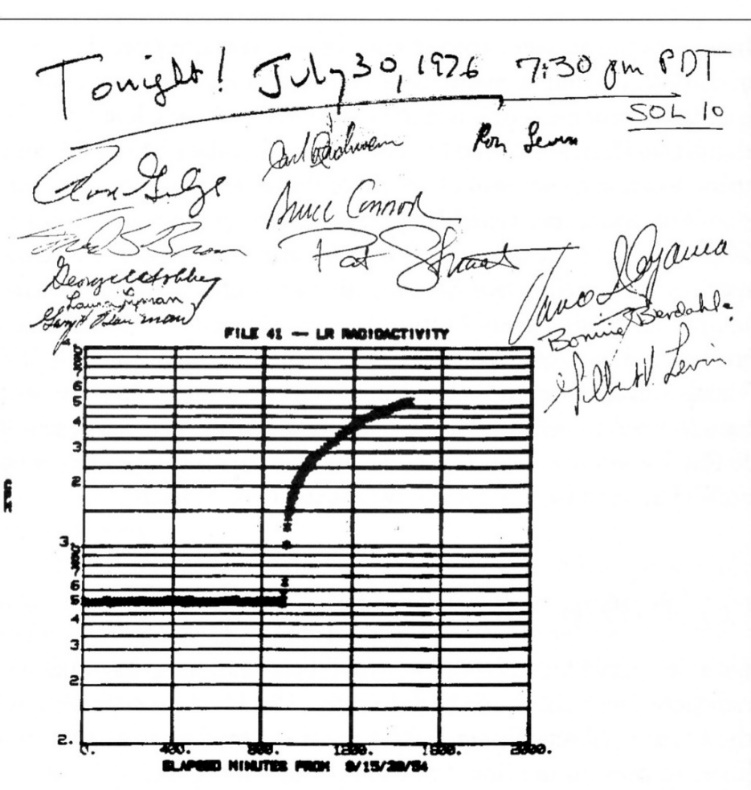 Due giorni dopo, il risultato sembrava indubitabile: una liberazione di anidride carbonica coerente con quella prodotta da microorganismi terrestri in condizioni simili. Levin celebrò il risultato con una bottiglia di champagne e raccolse le firme dei membri del team per commemorare quella che sembrava essere una scoperta rivoluzionaria: la vita su Marte. Entrambi i Viking confermarono più volte il rilascio di gas con l’aggiunta di sostanze organiche a nuovi campioni di regolite. Tuttavia, il gas cromatografo-spettrometro di massa a bordo dei due lander non rilevò tracce di composti organici. Fu una doccia fredda che indusse a interpretazioni alternative dei dati e a una crescente cautela nelle affermazioni. Solo anni dopo, si scoprì che alcuni bias metodologici avrebbero potuto influenzare le analisi del tempo.