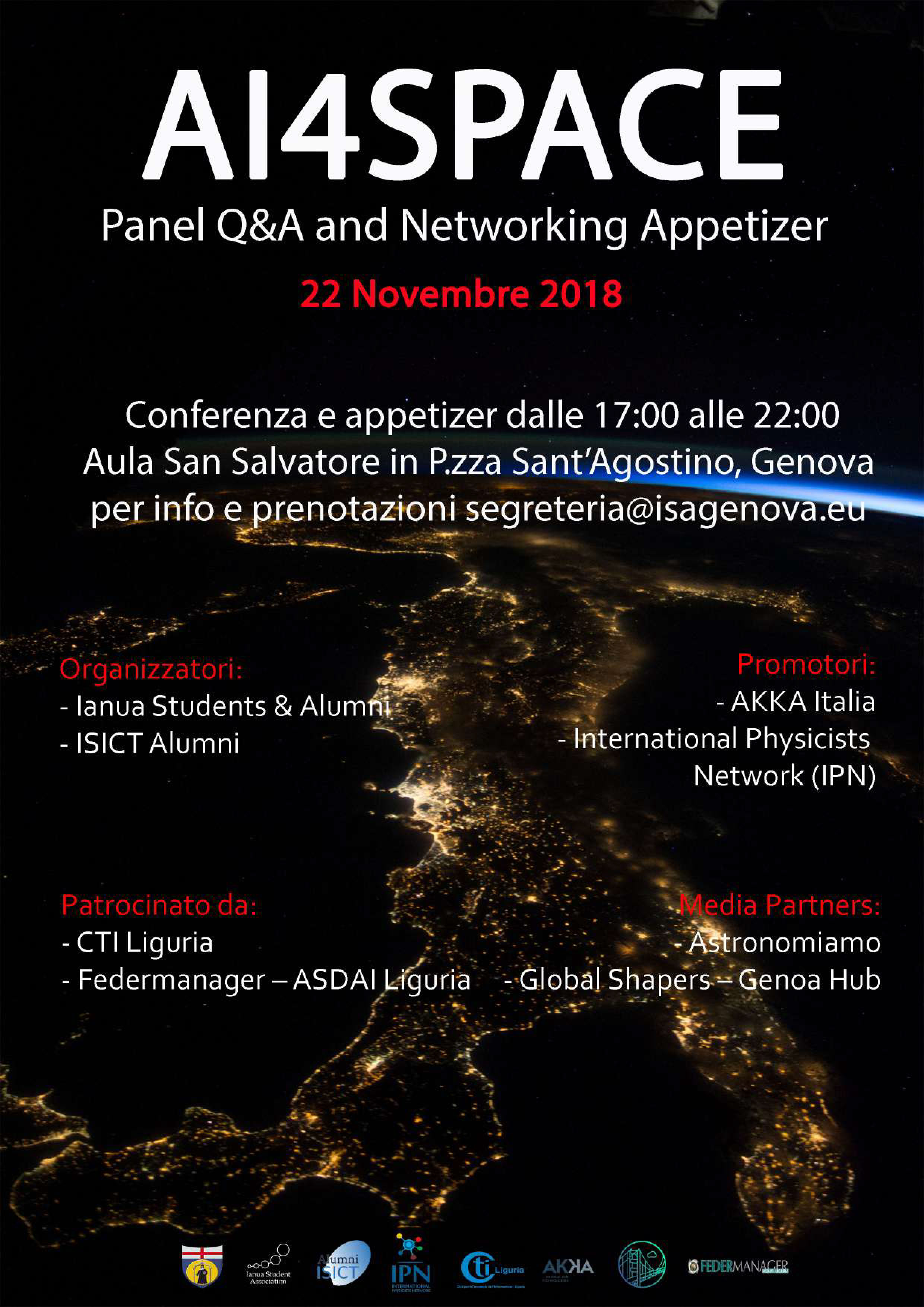 Si prega di registrarsi in anticipo su: https://www.eventbrite.it/e/biglietti-ai4space-51799694280