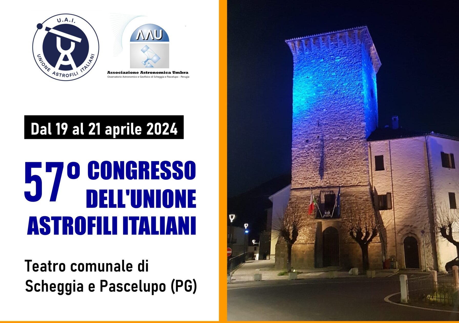 Dal 19 al 21 aprile 2024 torna – con grandi novità – il Congresso nazionale dell’Unione Astrofili Italiani (UAI), il più importante appuntamento degli appassionati di astronomia in Italia. Il Congresso, alla sua 57ª edizione, sarà un’occasione di incontro e confronto per scoprire quanto è stato fatto in ambito astrofilo, nei vari settori di attività, e per contribuire a definire nuove idee e i progetti futuri. Ospitato presso il Teatro Comunale di Scheggia e Pascelupo, il Congresso si avvarrà della preziosa collaborazione dell’Associazione Astronomica Umbra, delegazione territoriale dell’UAI.