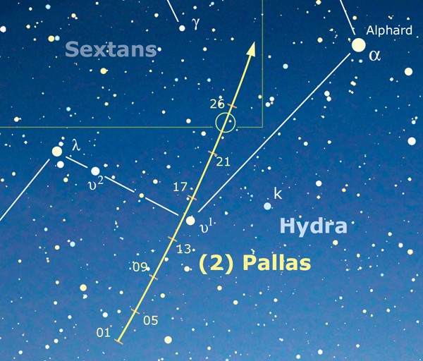 L’avete già visto dal titolo, ma ve lo dico lo stesso: il pianetino (2) Pallas, uno dei “magnifici quattro”, il 24 febbraio sarà alla distanza minima da 60 anni a questa parte!