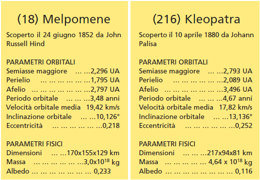 Tra gli oggetti in opposizione, la coppia migliore per luminosità e importanza storica ritengo che questo mese sia quella formata da (18) Melpomene e (216) Kleopatra, due asteroidi di cui abbiamo già avuto modo di parlare parecchie volte.