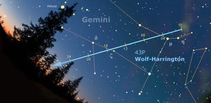 Questa piccola periodica si muoverà in luglio nella parte centrale della Vergine e la sua altezza sull’orizzonte, già inizialmente non esaltante ma sufficiente (circa +18° sull’orizzonte ovestsudovest verso le 22:45, ora d’inizio della notte astronomica), sarà destinata a peggiorare man mano durante il mese (+12° a fine mese alle 22:30). In questo periodo (il passaggio al perielio è previsto per il 2 agosto) dovrebbe raggiungere il massimo della luminosità prevista per questa apparizione, ovvero una modestissima undicesima magnitudine. Il 5 luglio si potrà vedere 5/6 primi d’arco a ovest della galassia di undicesima magnitudine NGC 4666.