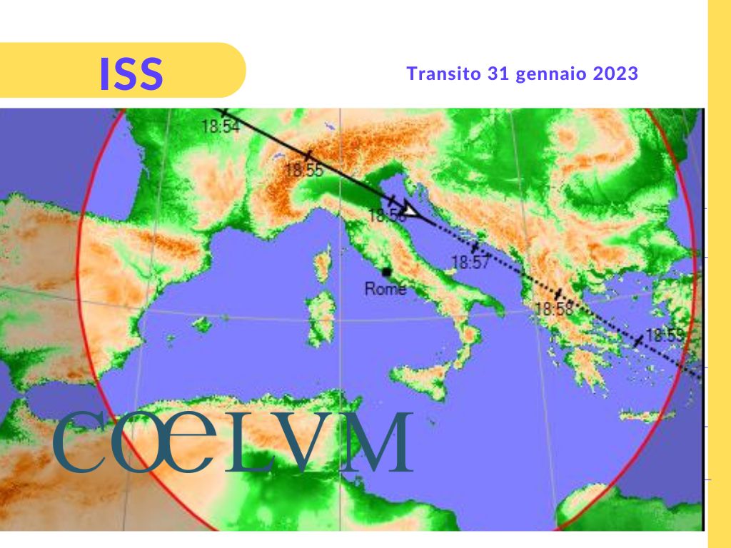 L’ultimo transito del mese, di nuovo parziale, il 31 Gennaio, sarà visibile dalle 18:51 verso NO alle 18:56 verso NE, la ISS sarà visibile al meglio dal Nord Est d’Italia, meteo permettendo. Magnitudine di picco a -3.6.