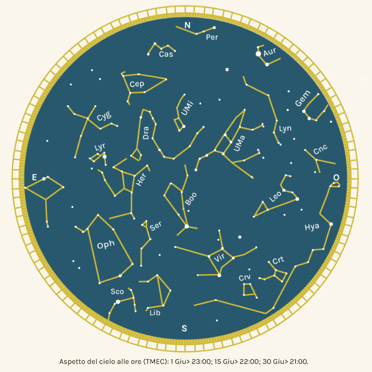 Le sere di giugno brillano della magia dell’estate, che farà il suo ingresso giorno 21 con il solstizio: sarà un mese in cui potremo ammirare le costellazioni che caratterizzano il cielo estivo, attraversato dal fiume di stelle della nostra galassia: la Via Lattea.