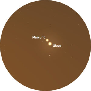 In particolare il gigante gassoso si troverà a circa 19’ a sudovest di Mercurio.