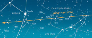 Finalmente ci siamo. Questo di ottobre è il mese in cui la Cometa 103P/Hartley arriverà a una distanza dalla Terra di 18 milioni di chilometri, sufficientemente bassa per regalarci la speranza di poterla osservare anche a occhio nudo. Ciò accadrà il 21 ottobre e intorno a quella data la magnitudine della Hartley dovrebbe scendere fino alla +4,4. Dalle stime effettuate in settembre, fino al giorno in cui stiamo scrivendo queste note, dobbiamo però dire che la cometa si sta mantenendo un po’ al di sotto delle previsioni e questo potrebbe portare a un risultato piuttosto deludente in termini di osservabilità.
