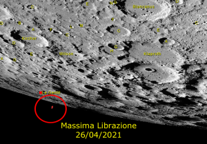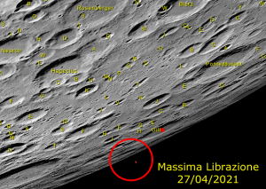26 aprile: Librazione sud cratere LE GENTIL. Fase 14 giorni, sorge 19:35.