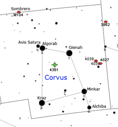 All’interno della Via Lattea, nella direzione del Corvo, si trova anche la nebulosa planetaria NGC 4361, scoperta da William Herschel nel 1785; al telescopio appare come un debole disco leggermente allungato, al cui centro è visibile la stella progenitrice, oggi nana bianca di tredicesima magnitudine.