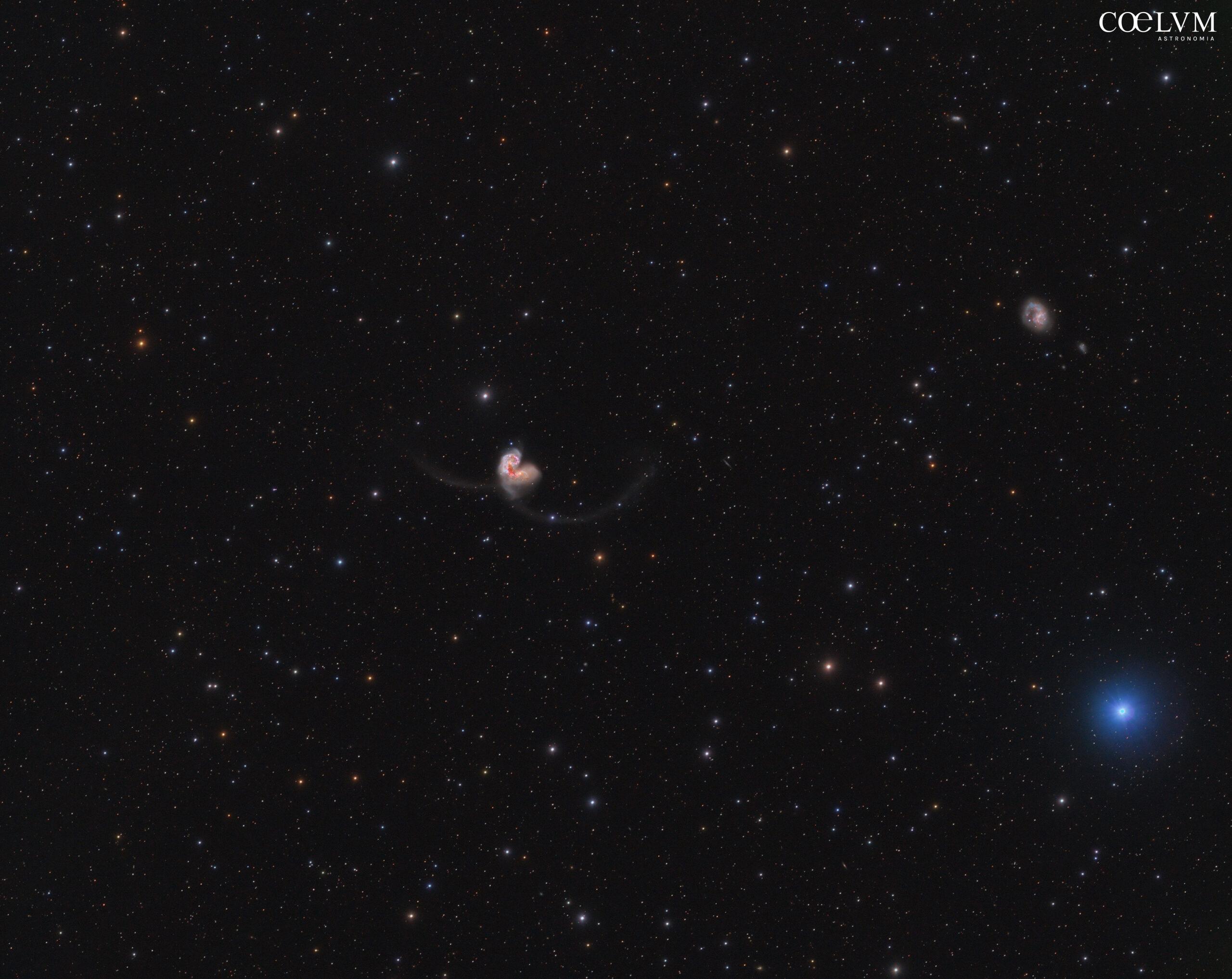 NGC 4038 e NGC 4039 (Galassie Antenne); in alto a destra NGC 4027. Campo fotografato il 13 aprile 2023 da Fernando Oliveira de Menezes per Coelum e pubblicato su questo sito web il 22 ottobre 2023