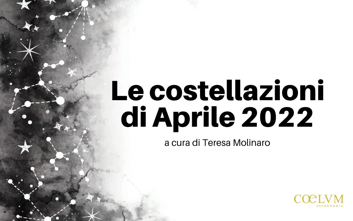 Nel mese di aprile infatti saranno protagoniste le costellazioni tipiche della primavera: sull’orizzonte Ovest Orione si appresta a diventare un piacevole ricordo dell’inverno, mostrandosi in una breve finestra della prima parte della notte astronomica e anticipando sempre più il suo tramonto, assieme a Toro, Gemelli e Auriga. A Sud-Ovest Sirio tramonta con la costellazione del Cane Maggiore, seguendo fedelmente il suo padrone Orione, e a Nord domina l’Orsa Maggiore, mentre Cassiopea e Cefeo brillano a Nord-Ovest.