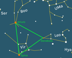 Proprio le costellazioni di Boote, Vergine e Leone daranno vita all’asterismo del Triangolo Primaverile, che avrà ai vertici le stelle Arturo, Spica e Denebola.