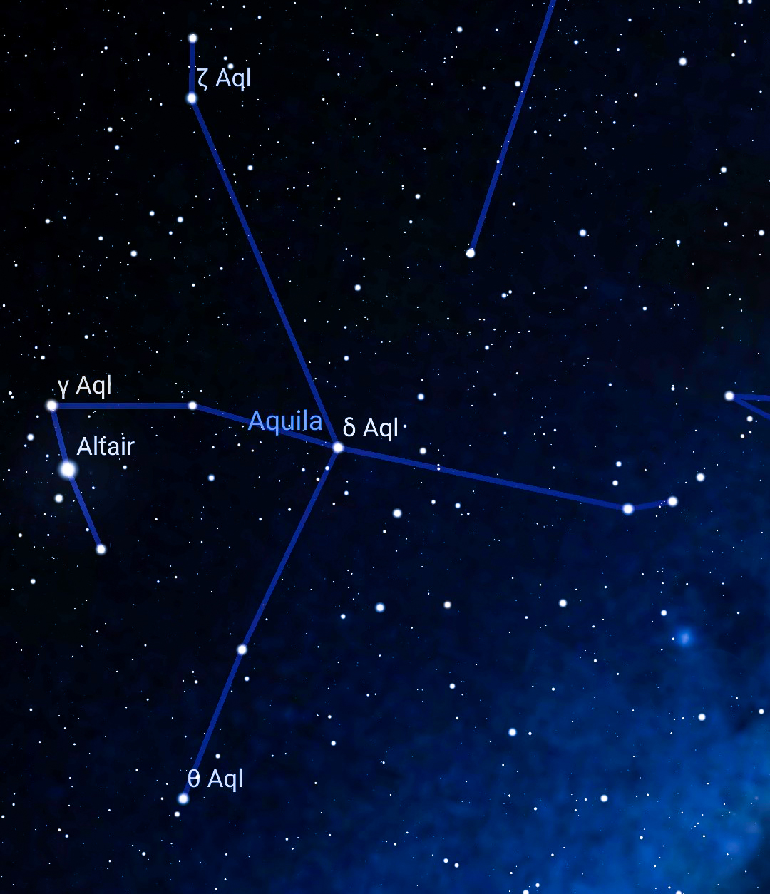 Alpha Aquila (Altair) è una stella bianca con magnitudine apparente di 0.77 e questo ne fa la dodicesima stella più brillante del cielo, con una distanza dalla Terra di soli 17 anni luce.
