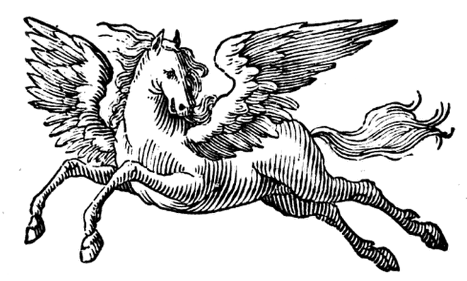 E ancora: troviamo la figura di Pegaso tornare all’Olimpo dopo la morte di Bellerofonte e successivamente ridiscendere sul Monte Elicona mentre era in atto una gara di canto tra le Muse e le Pieridi; alle melodie intonate dalle Pieridi il Monte Elicona prese ad innalzarsi verso il cielo e solo lo zoccolo battuto sulla roccia dal cavallo alato riuscì ad arrestarne la rapida ascensione. Nel punto in cui Pegaso sbatté lo zoccolo si aprì una sorgente chiamata così “sorgente del cavallo“.