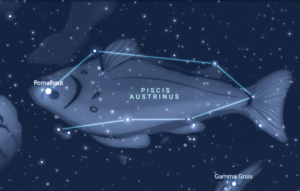 Dall’arabo fom-al-hut, il nome della stella alfa del Pesce Australe significa “la bocca del pesce“; la sua brillantezza è accentuata anche dal fatto che l’astro si trovi in una regione povera di stelle e facilmente individuabile già in estate, bassa sull’orizzonte in direzione Sud-Est.