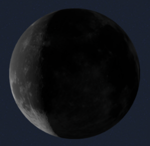 Già visibile poco prima delle ore 21:00 circa, sulla cui porzione illuminata dalla luce solare sarà possibile individuare innumerevoli strutture tra cui il mare Humboldtianum, il settore orientale del mare Crisium con i piccoli mari adiacenti oltre agli spettacolari crateri lungo il lato est del mare Fecunditatis (Langrenus, Vendelinus, Petavius, Furnerius), il tutto in una invidiabile condizione osservativa in quanto letteralmente “stretti” fra il bordo lunare e la linea del terminatore.
