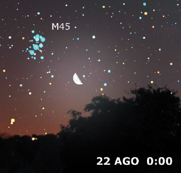 La Luna calante raggiungerà le Pleiadi, sorgendo insieme all’ammasso verso la mezzanotte. Il disturbo luminoso sarà notevole, ma favorevoli condizioni meteo potrebbero rendere possibile una ripresa in cui le stelle delle Pleiadi non siano cancellate dalla luce della nostro satellite.
