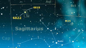 Nell’emisfero boreale il Sagittario è una figura caratteristica delle notti d’estate: appare molto bassa sull’orizzonte meridionale e può essere osservata nel cielo serale solo nel periodo compreso fra giugno e settembre, offrendo all’appassionato del cielo profondo una scelta osservativa davvero senza pari, tanto da essersi meritata il nomignolo di “Campo dei miracoli”. E a ragione, perché entro i suoi confini sono contenuti, ad esempio, ben 15 oggetti Messier. Per confronto, la grande costellazione del Cigno, ne possiede solo due, mentre tra quelle quasi altrettanto ricche, la Vergine ne possiede 11 e l’Ofiuco 7. In questi casi si tratta però di “monoculture” perché la Vergine annovera tutte galassie e l’Ofiuco tutti ammassi globulari, mentre il Sagittario può vantare anche una straordinaria varietà: 3 famose nebulose (Laguna, Omega e Trifida), 5 ammassi aperti e 7 ammassi globulari.