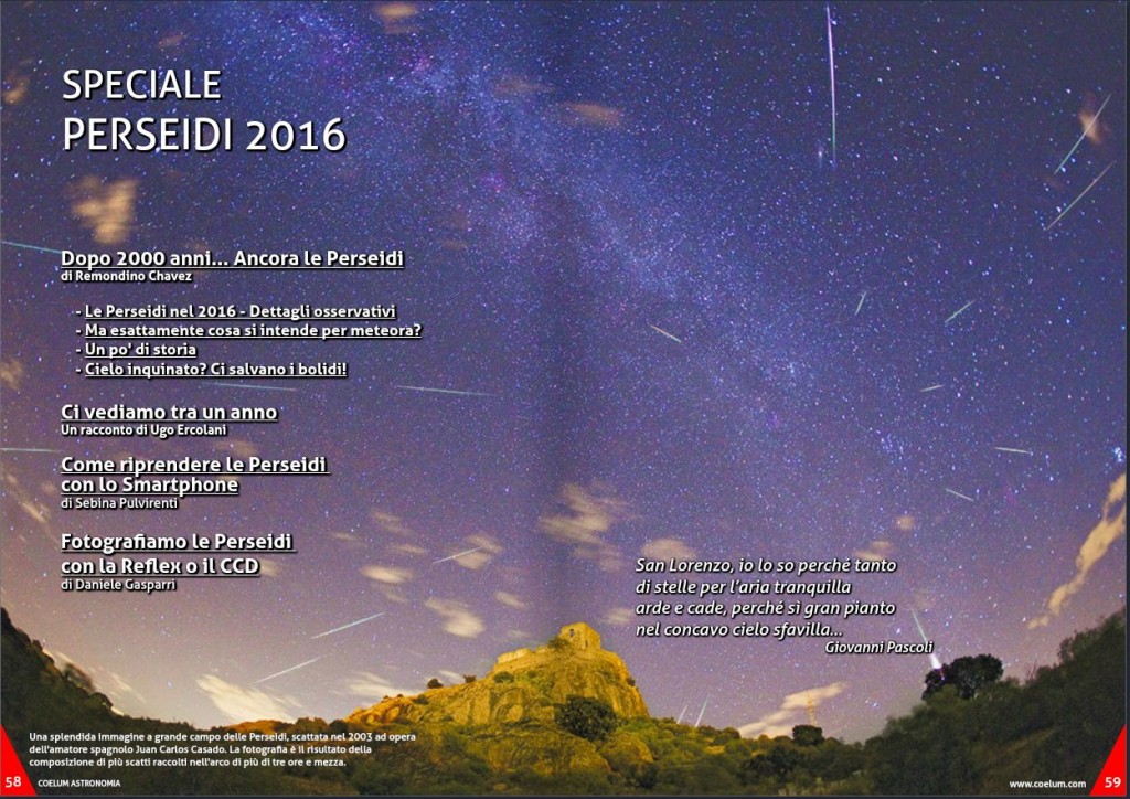 Quest’anno Coelum ha dedicato a questo tradizionale appuntamento estivo uno Speciale di ben 20 pagine a partire da pag. 58. Leggilo gratuitamente su Coelum 202! Qui sotto il sommario: