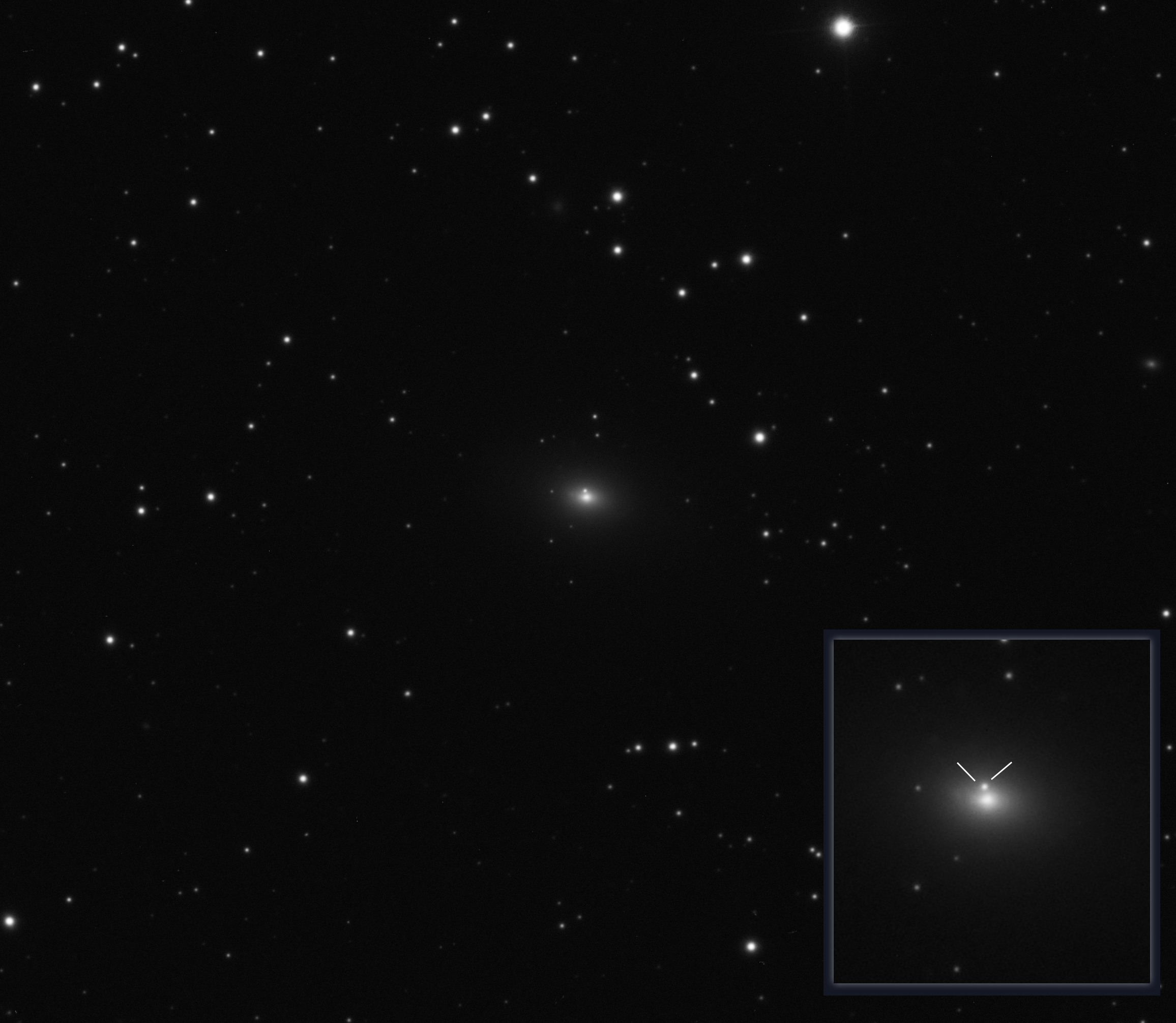 Chiudiamo la rubrica di questo mese passando da una supernova molto debole e collocata in una piccola e poco fotogenica galassia, ad una che invece rappresenta la supernova più luminosa di questo periodo avendo raggiunto l’interessante mag.+13,5 nella seconda metà di gennaio. Stiamo parlando della SN2025gj individuata nella notte dell’8 gennaio dal programma professionale americano di ricerca supernovae denominato DLT40 che utilizza una batteria di sei telescopi Ritchey-Chrétien da 41cm chiamati PROMPT e situati sul Cerro Tololo in Cile. La galassia ospite è la NGC2986, un’ellittica posta nella costellazione meridionale dell’Hydra a circa 110 milioni di anni luce di distanza e accompagnata in cielo dalla galassia a spirale PGC27873 situata grosso modo alla solita distanza. Nella stessa notte della scoperta, con il Southern African Large Telescope da 10 metri di diametro, in Sudafrica, è stato ripreso lo spettro di conferma che ha permesso di classificare il nuovo transiente come una supernova di tipo Ia scoperta circa due settimane prima del massimo di luminosità e con i gas eiettati dall’esplosione che viaggiano alla velocità di circa 13.700 km/s. Questa supernova è comunque un facile oggetto da immortalare, situato in un fotogenico campo ricco di galassie. L’unico inconveniente è la declinazione a -21°, che penalizza leggermente gli osservatori del Nord Italia. La SN2025gj rappresenta la seconda supernova conosciuta esplosa in NGC2986. La prima fu la SN1999gh scoperta il 3 dicembre 1999 dall’astrofilo giapponese Kesao Takamizawa, anch’essa di tipo Ia.
