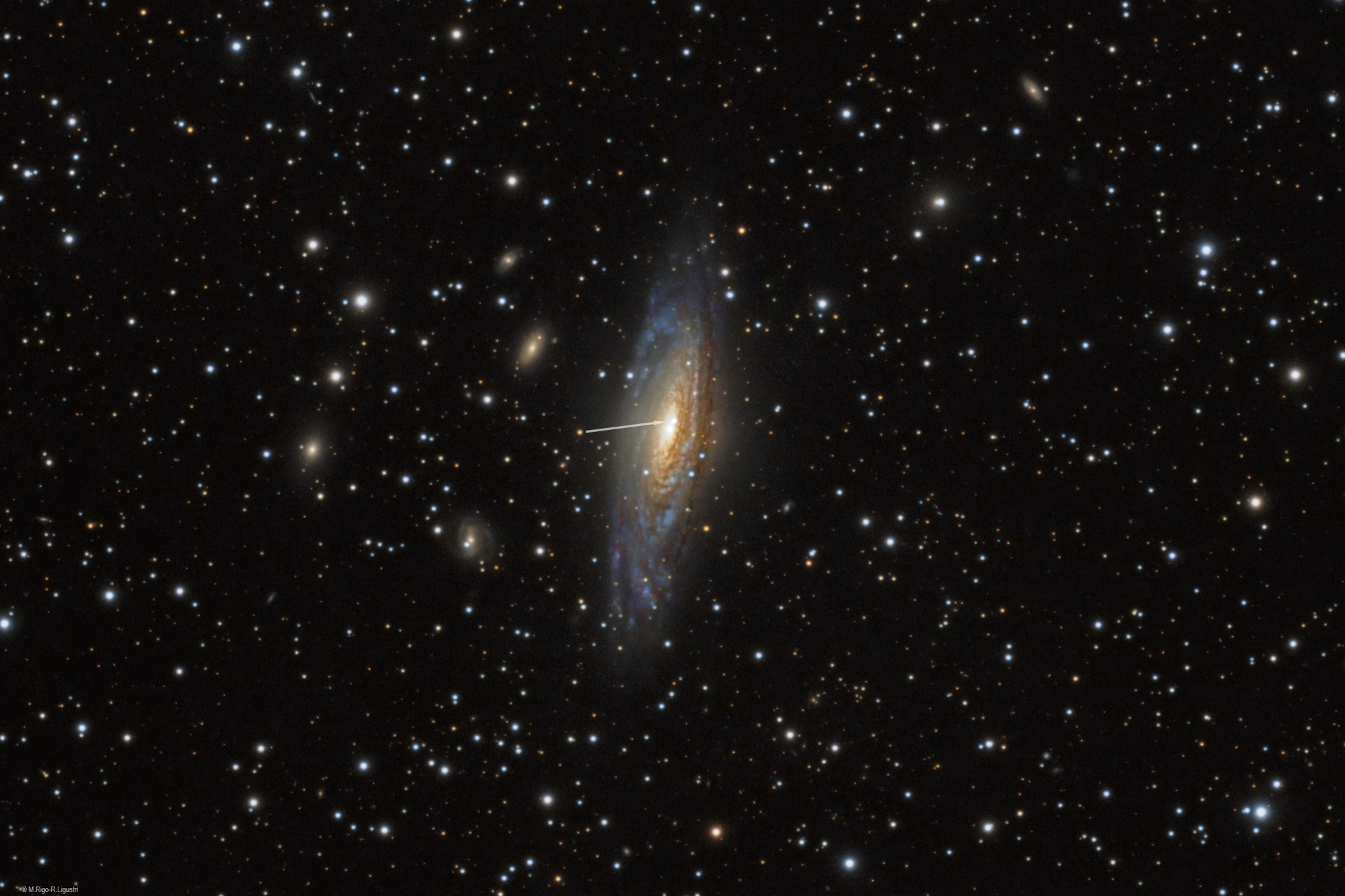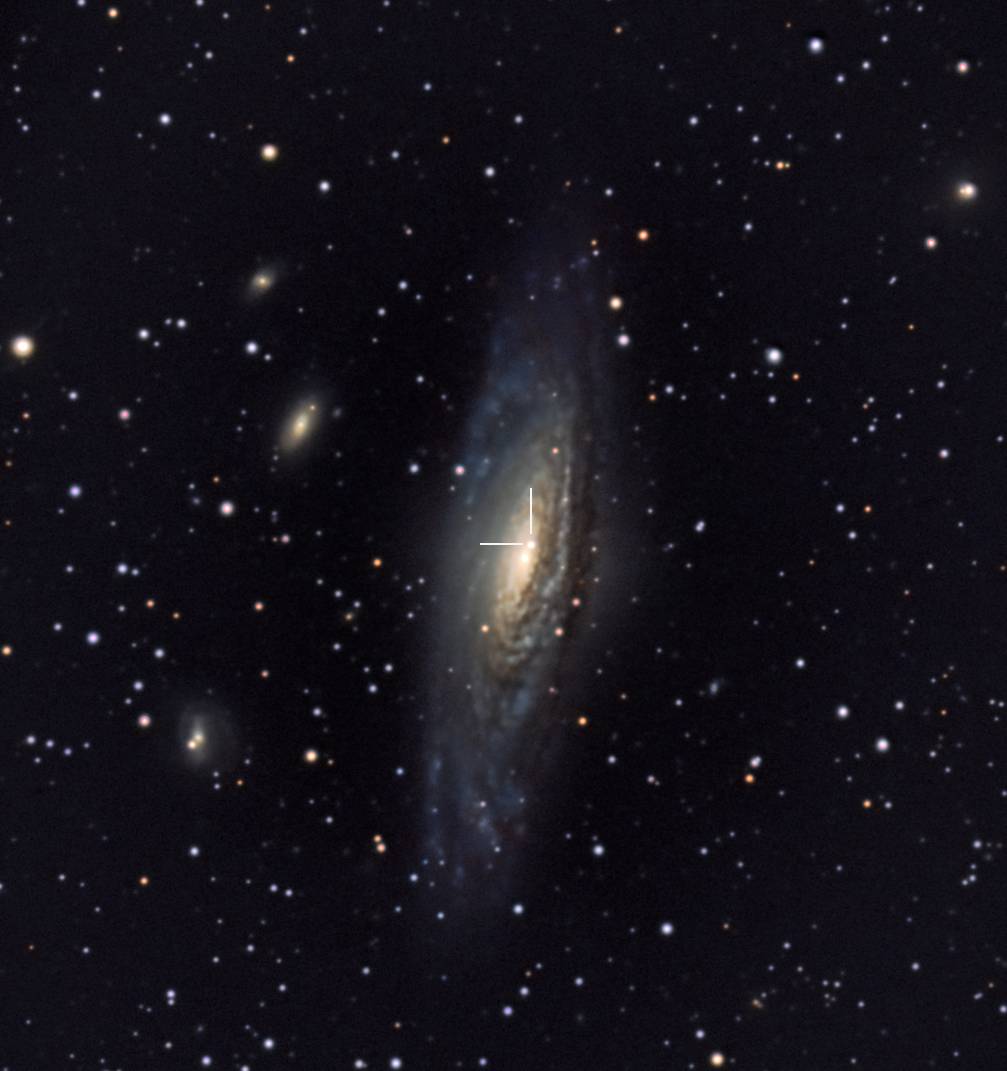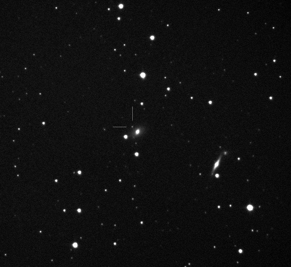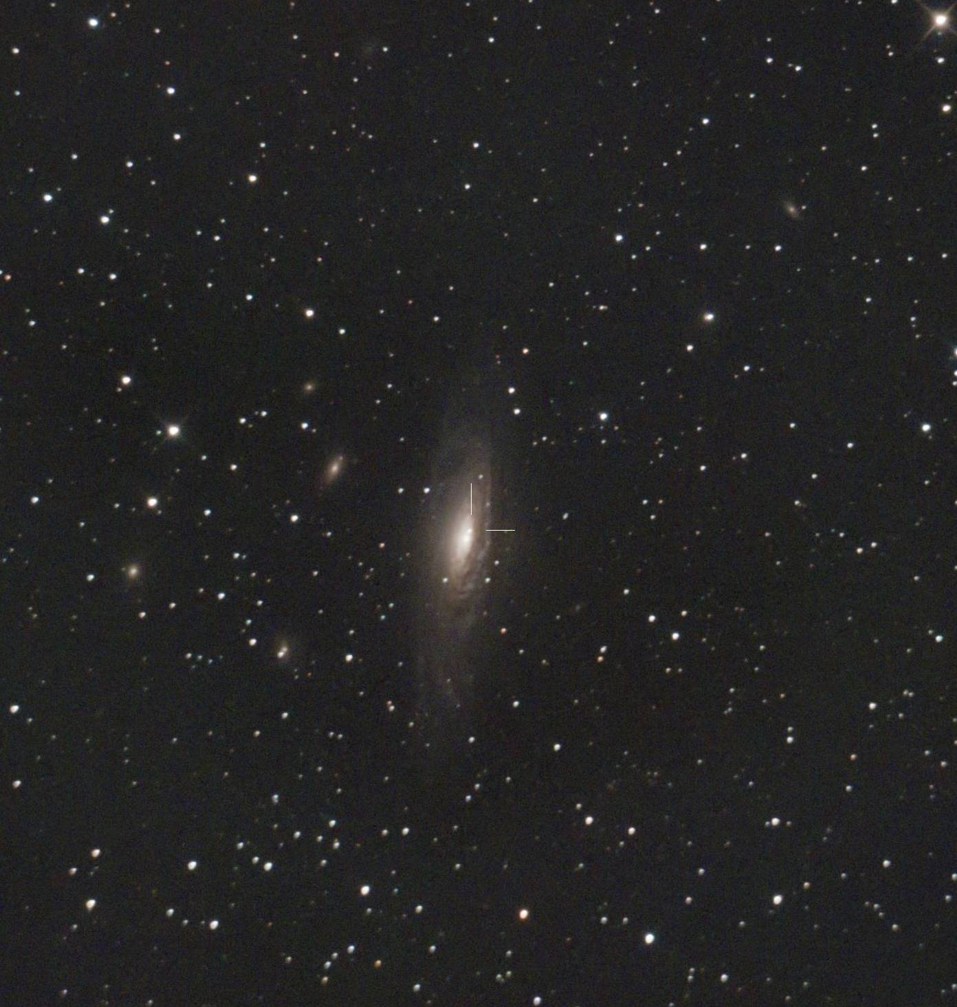 Nella notte del 15 novembre ha individuato un nuovo transiente di mag.+17,5 nei pressi della bella galassia a spirale barrata peculiare NGC2146 posta nella costellazione della Giraffa a circa 60 milioni di anni luce di distanza ed accompagnata in cielo da una più piccola galassia a spirale barrata denominata NGC2146A. Situate a soli 12° dal Polo Nord Celeste, queste due galassie sono circumpolare e perciò visibili tutta la notte. La caratteristica principale di NGC2146 è la struttura irregolare, con presenza di un immenso braccio di polveri posizionato vicino al nucleo, deformato da un probabile incontro ravvicinato o da una fusione con un’altra galassia più piccola. Questa situazione sembra essere testimoniata anche dall’alta formazione stellare all’interno della galassia, così elevata da far inserire l’oggetto nel novero delle galassie “starburst”.
