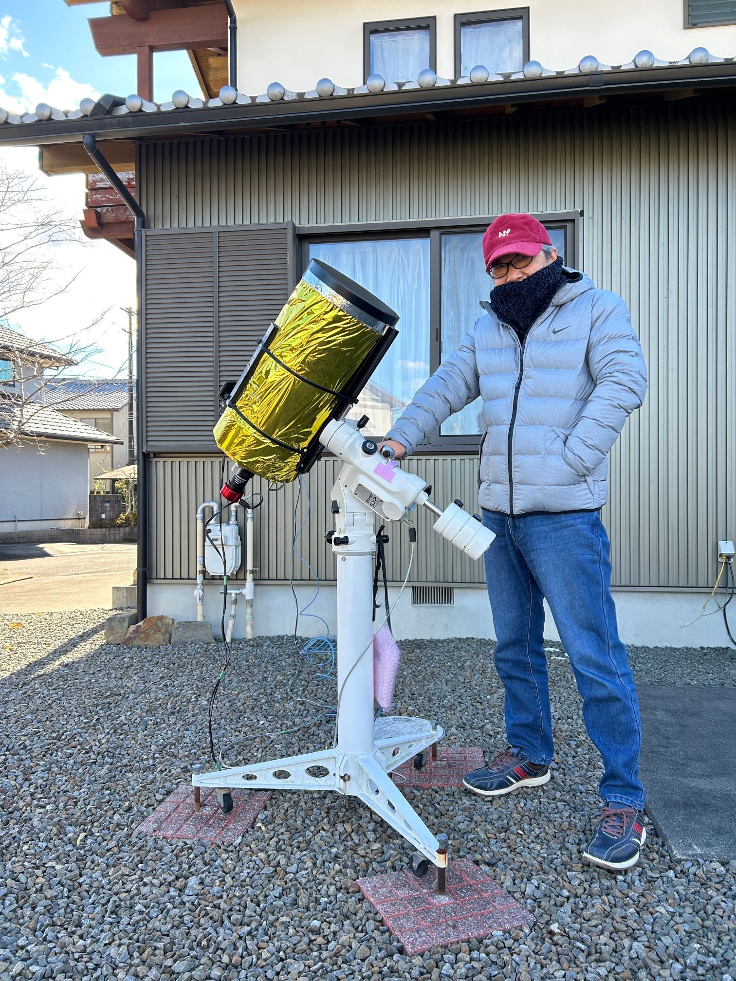 Nato il 2 gennaio del 1958, tra pochi giorni compirà 67 anni. Abita nella prefettura di Shizuoka, vicino al famoso Monte Fuji. Ha iniziato ad essere attratto dal cielo stellato già ai tempi dell’asilo. Da quattro anni si dedica in maniera assidua alla ricerca di supernovae riprendendo circa 30 campi di galassie ogni notte che è sereno, con il suo telescopio Celestron 9.25 da 235mm F.10 ridotto a F.6,3. Non possiede un vero e proprio osservatorio e il suo strumento è installato in giardino e gestito dall’interno della sua casa. Nella notte del 17 dicembre ha coronato un suo grande sogno individuando una nuova stella di mag.+16,5 nella galassia a spirale barrata NGC2523 nella costellazione della Giraffa al confine con quella dell’Orsa Minore a circa 150 milioni di anni luce di distanza.