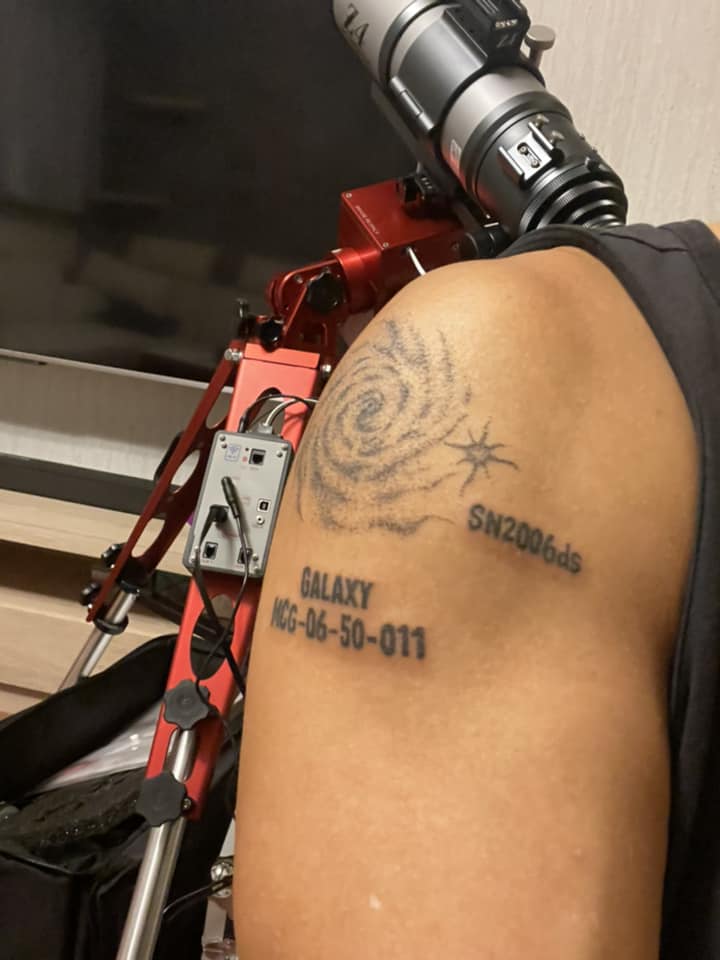 I primi a riprendere lo spettro di conferma nella notte del 7 aprile sono stati gli astronomi dell’Osservatorio del Roque de los Muchachos nelle Isole Canarie con il Liverpool Telescope da 2 metri. La SN2025gmc è una supernova di tipo Ia scoperta circa due settimane prima del massimo di luminosità. Abbiamo pertanto contattato Wilson Tsai per avere delle notizie sulla loro attività di ricerca. La sigla JIST è l’abbreviazione di Jiama’erdengTianwentai/ICQ Search and Tracking Program un programma amatoriale avviato nel 2019 focalizzato sulla ricerca di comete e pianetini. Il loro osservatorio è situato a 5100 metri di altitudine sulla montagna chiamata Jiama’erdeng a Ngari, Tibet, Cina, utilizzando telescopi e altre attrezzature finanziate dalla società cinese Tencent. Grazie all’impressionante altitudine, si tratta dell’osservatorio astronomico più alto al mondo. L’osservatorio è di proprietà di Tao Chen ed insieme a Winson Tsai, Zhangwei Jin, Jie-lin Yang, Yu-Hsing Lee, Hung-Yi Yeh e Po-Liang Cheng, da circa due anni è stato avviato un programma di ricerca supernovae, che ha portato a questo primo importante successo. Lo strumento utilizzato per la ricerca è un telescopio Takahashi Merlow da 300mm F.7 e con un’esposizione di 60 secondi ad immagine, vengono riprese circa 300 galassie per notte. L’osservatorio è controllato in remoto e per riprendere le immagini viene utilizzato il programma ACP software. Le immagini vengono invece controllate con il programma SN Search Tool. Dobbiamo pertanto fare i nostri sinceri complimenti a questo nuovo gruppo per il successo ottenuto, oltre alla strumentazione e alla location davvero di prim’ordine. Vogliamo anche soffermarci anche su una curiosità: Winson Tsai e Tao Chen nel 2009 hanno scoperto insieme otto pianetini, mentre per Wilson Tsai la SN2025gmc rappresenta la sua seconda scoperta. La prima fu infatti la SN2006ds scoperta nella galassia MCG-06-50-011 ed a dimostrazione di quanto grande sia la sua passione per questo tipo di ricerca e quanto grande sia stata la gioia per la prima supernova scoperta, si è fatto tatuare sulla sua spalla il disegno della galassia con la supernova, il nome della galassia e la sigla della supernova…..davvero straordinario!!!