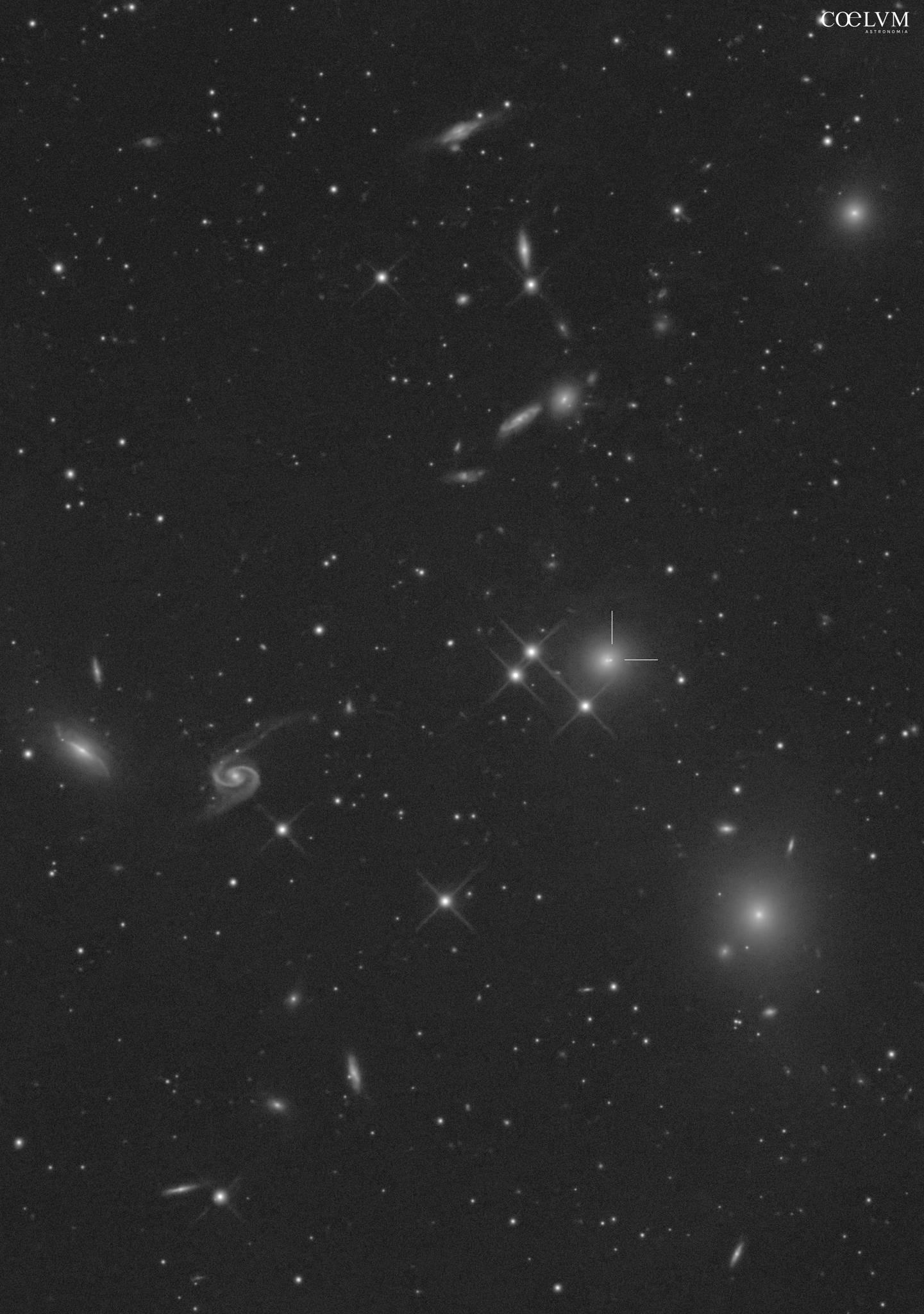 Nei giorni successivi alla scoperta, la supernova ha comunque incrementato la sua luminosità, raggiungendo il massimo il 13 giugno alla discreta mag.+13,6 per poi iniziare la discesa. A fine giugno la luminosità è calata intorno la mag.+15 ma permette ancora di ottenere delle belle immagini di una campo stellare ricco di galassie (siamo infatti all’interno dell’Ammasso della Vergine) dove troneggia M49.