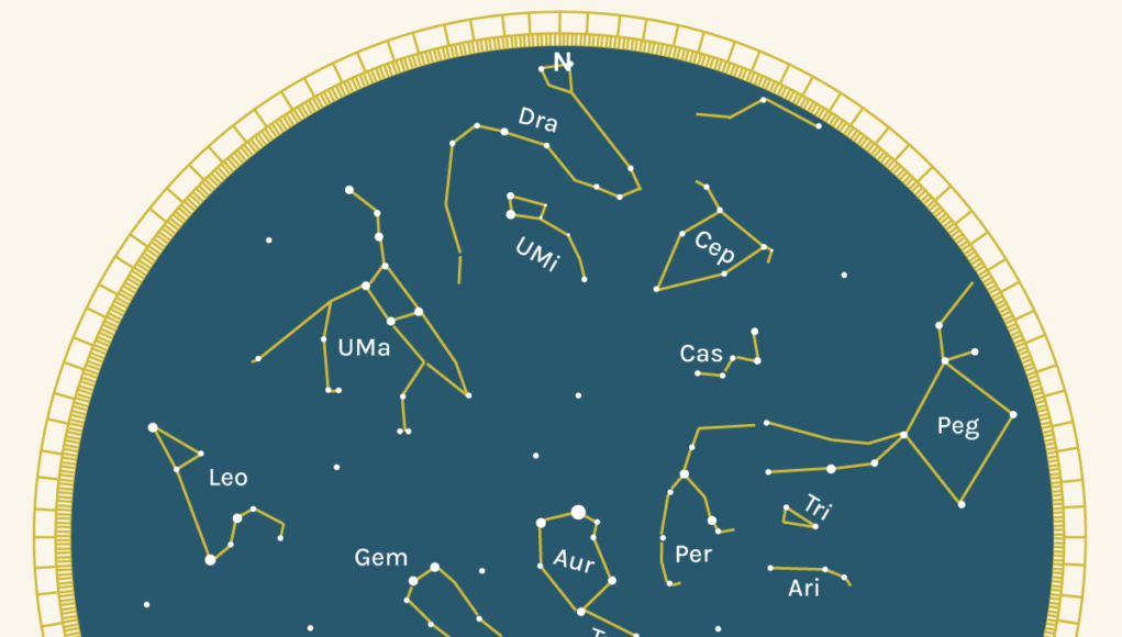 Grandi protagoniste saranno Cancro e Leone sin dalle prime ore di buio, mentre a dominare è ancora Orione a sudest insieme a Cane Maggiore e Minore e Sirio; nel punto più alto della sfera celeste (Zenit) brilla Perseo accompagnato dall’Auriga e, poco più in basso, Gemelli e Toro.