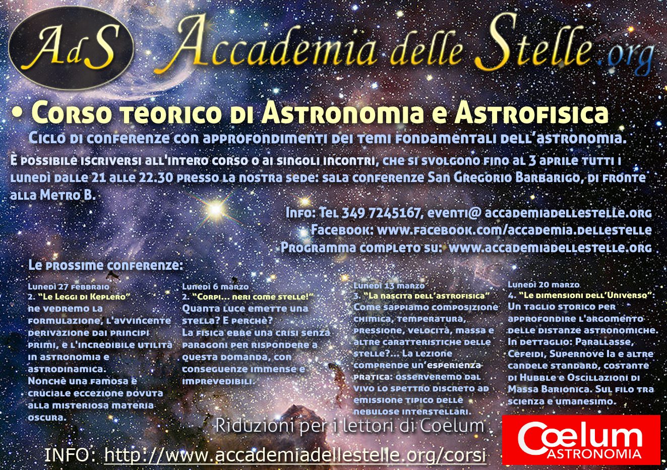 Fino a lunedì 3 aprile ospitiamo il Corso teorico di astronomia generale: un ciclo di conferenze settimanali che offre uno sguardo su argomenti raramente trattati nei corsi divulgativi. Scopriremo quali leggi fisiche agiscono nei più importanti fenomeni astronomici, per comprendere l’universo e la scienza che lo studia: approfondimenti di grandissimo interesse per gli appassionati. Un modulo riguarderà anche la meccanica quantistica.