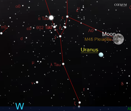 Alle ore 04:40 del 4 Dicembre 2025 la Luna quasi piena in fase di 13,8 giorni ad un’altezza di +21° occulterà parzialmente l’ammasso aperto delle Pleiadi M45 ad iniziare dal bordo occidentale del nostro satellite. Questo interessante evento avrà termine poco dopo le ore 06:00 con la Luna sempre più bassa sull’orizzonte andando così a tramontare alle 06:52.