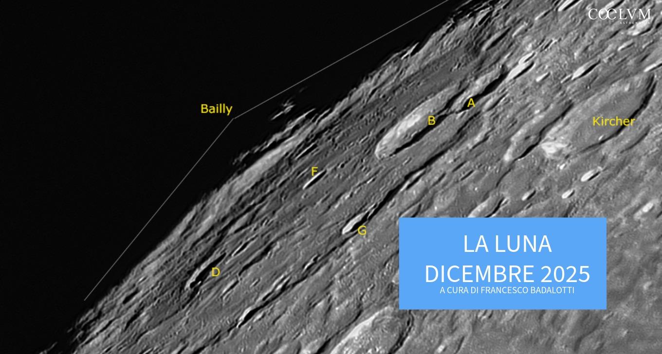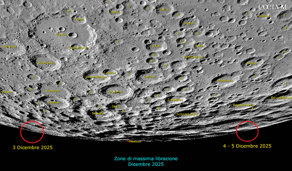Il nuovo mese si apre col nostro satellite in fase di 10,6 giorni alle ore 00:00 dell’1 Dicembre 2025 già pronto a mostrarsi telescopicamente nell’infinita varietà dei suoi panorami.