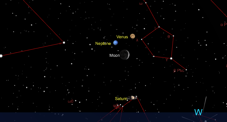Alle ore 21:25 dell’1 Febbraio una falce lunare di 3,6 giorni sarà in congiunzione col pianeta Venere mentre la Luna sarà già tramontata alle ore 21:02, pertanto con i due corpi celesti ormai sotto l’orizzonte (a -4°31’ la Luna e a -1°13’ Venere).
