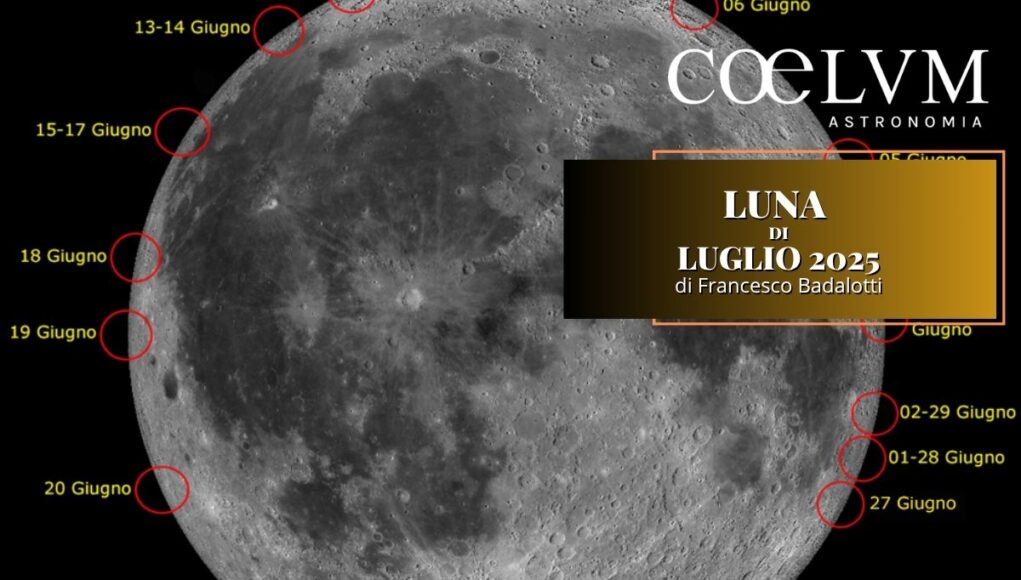 Alle ore 21:11 del 24 Luglio la Luna sarà in Novilunio con l’emisfero rivolto verso la terra completamente buio, mentre sarà perfettamente illuminato l’emisfero opposto. Da qui un nuovo ciclo che col progredire della fase di Luna crescente ci mostrerà porzioni di suolo lunare sempre più ampie illuminate dalla luce del Sole e (telescopicamente….) raggiungibili nelle più comode ore serali, fino a chiudere questo mese nella serata del 31 Luglio quando, in fase di 7 giorni, alle ore 23:25 scenderà sotto l’orizzonte dopo avere dato la possibilità di ammirare nuovamente, tra l’altro, anche l’area del bacino da impatto del mare Nectaris. A quel punto mancheranno esattamente 15 ore e 6 minuti alla fase di Primo Quarto dell’1 Agosto ma ne riparleremo fra un mese.
