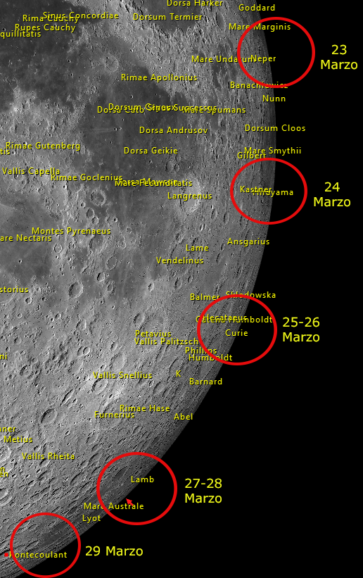 - 27 Marzo. Fase crescente 05,95 giorni – Librazione Mare Australe