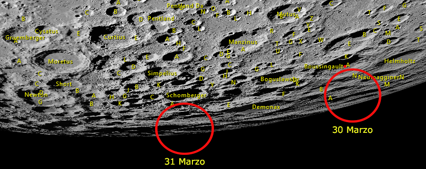 - 31 Marzo. Fase crescente 10,09 giorni – Librazione cratere Schomberger