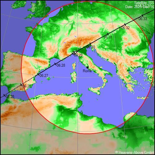 Il 16 Dicembre, un transito visibile al meglio dal Nord Italia, dalle 06:26 alle 06:34, da O a NE. Magnitudine massima a -3.3.