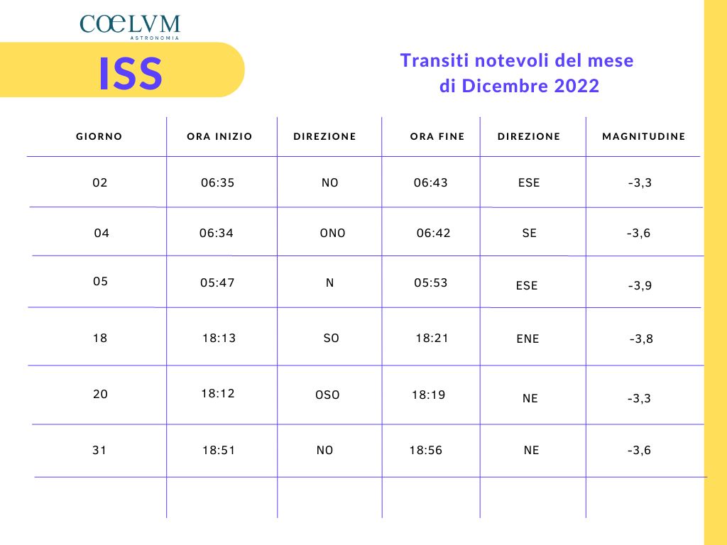 La ISS – Stazione Spaziale Internazionale sarà rintracciabile nei nostri cieli ad orari mattutini nelle prime due settimane di Gennaio, e serali nelle seconde due.