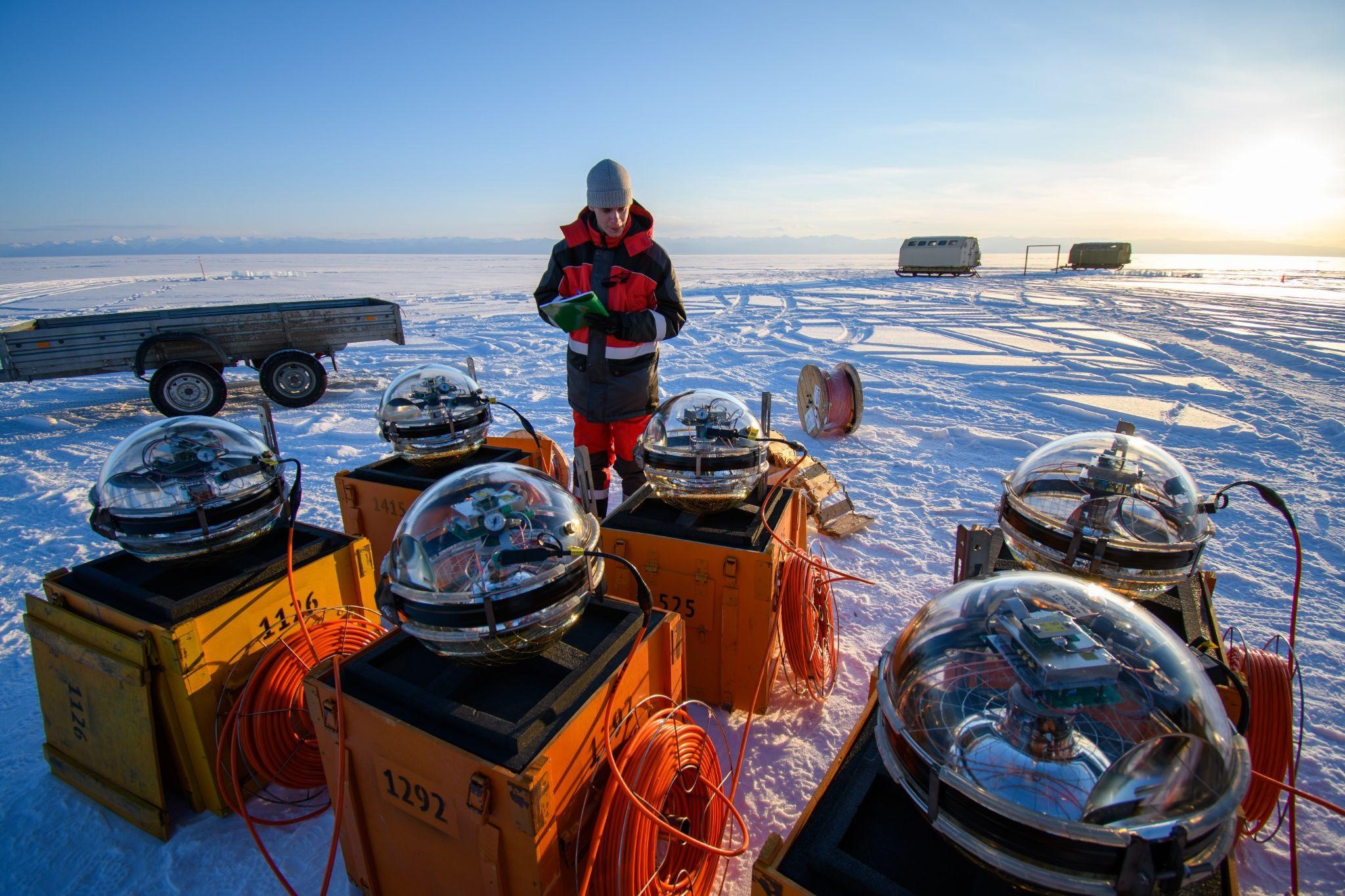 neutrini nelle acque del lago Baikal.