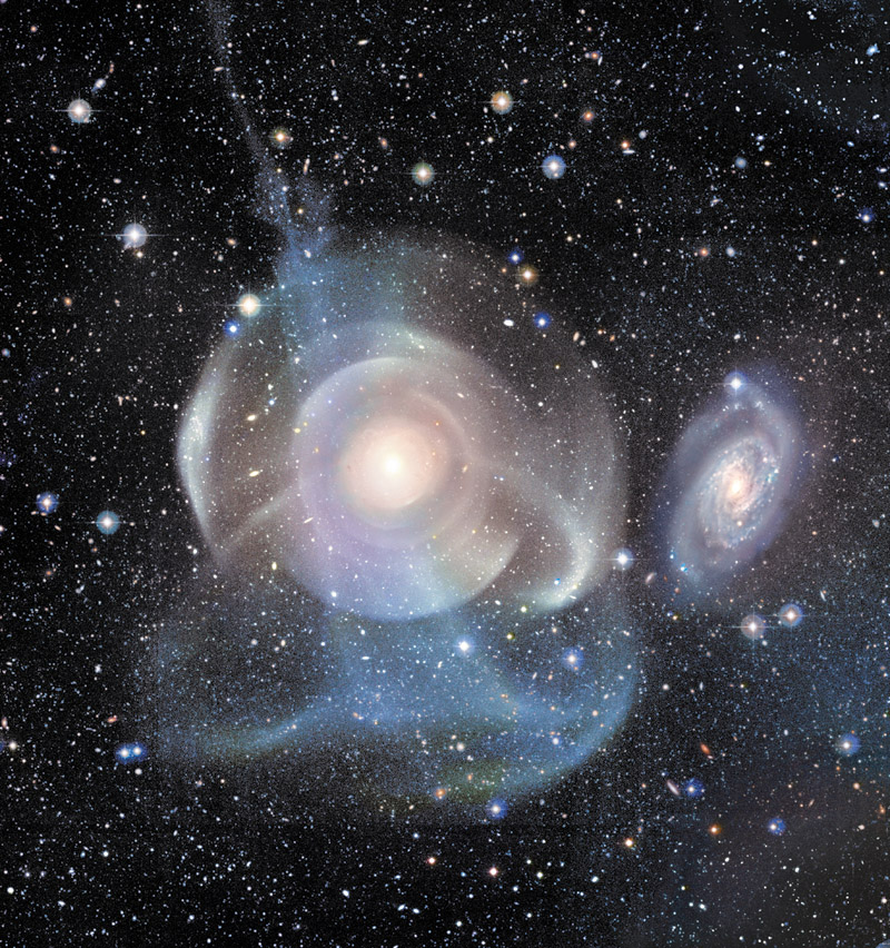 È da questo punto di vista che lo studio delle galassie a guscio (vedi Coelum, numeri 157 e 161) assume una particolare rilevanza: la distribuzione del materiale in questo particolare tipo di galassie è l’impronta delle loro passate interazioni. Fra le altre è stata presa in esame la spettacolare NGC 474 (uno dei soggetti scelti per il calendario 2012 CFHT-Coelum).