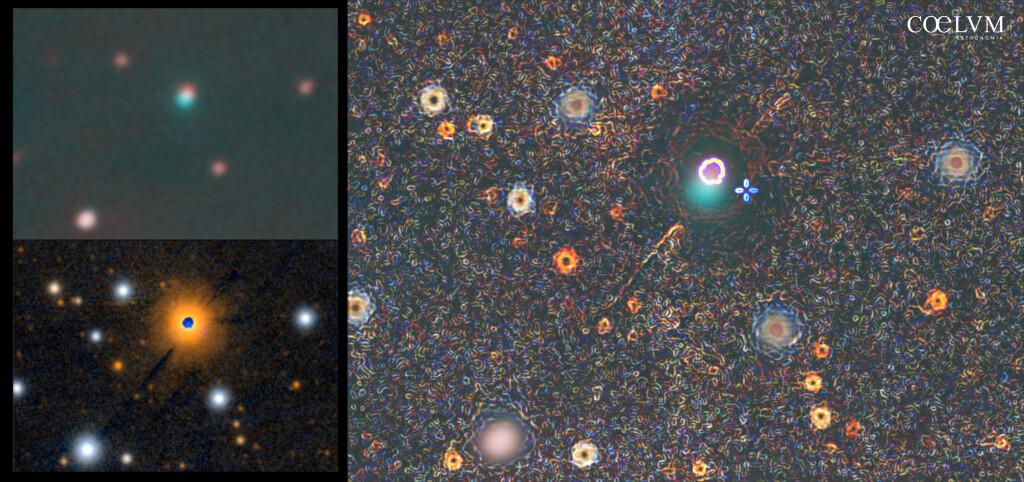 Da lì è scattata la scintilla. Confronti con immagini d’archivio, verifiche incrociate, qualche notte passata a paragonare frame e a scavare nei cataloghi scientifici… e il sospetto si è fatto via via più corposo: quella sorgente si è davvero accesa recentemente, o quantomeno ha mostrato un forte incremento di luminosità in una banda ben precisa, quella dell’Ossigeno terzo (OIII), normalmente ripresa con filtri narrowband per la composizione delle immagini in Hubble Palette.