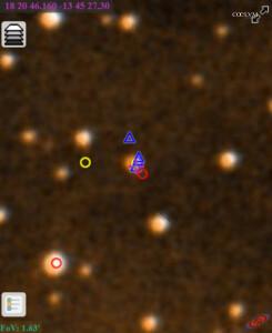 L’oggetto in questione si trova nelle vicinanze della posizione RA 18h 20m 46.16s, DEC -13° 45′ 27.3″ (J2000), in un campo stellare abbastanza denso, immerso in emissioni di idrogeno ionizzato.