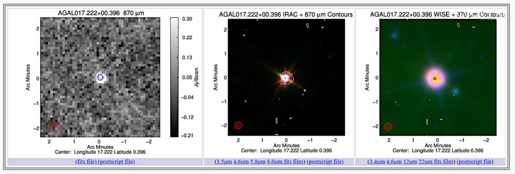 | 6 | BGPS G017.225+00.396 | 10.47 | smm | 18 20 46.3133 | -13 45 17.095 |